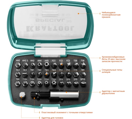 Купить Набор бит KRAFTOOL (32шт; ; PH, PZ, SL, TT(TR/TH), SW, TW, TS, SP(U); 2610-H32) вы можете в компании Стройшоп, оформив заказ в интернет магазине, или