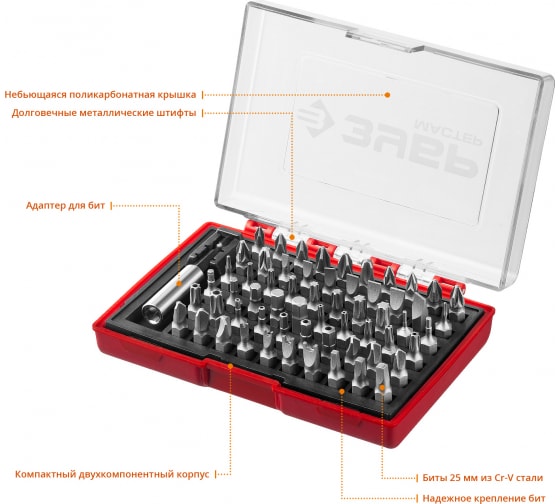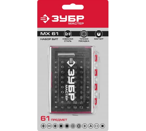 Купить Набор бит ЗУБР Мастер (61шт; 25мм; PH, PZ, SL, T, HEX; 26089-H61) вы можете в компании Стройшоп, оформив заказ в интернет магазине, или