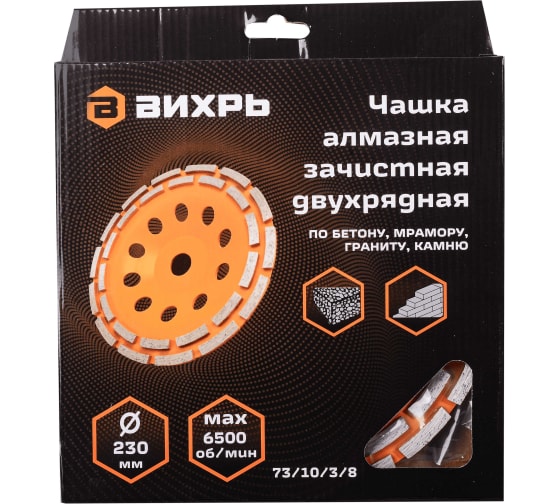 Купить Чашка алмазная зачистная ВИХРЬ (230мм 2-х рядная PRO, повышенный ресурс) вы можете в компании Стройшоп, оформив заказ в интернет магазине, или