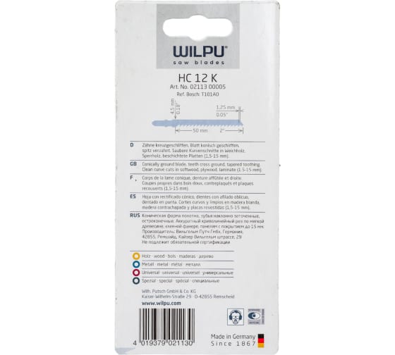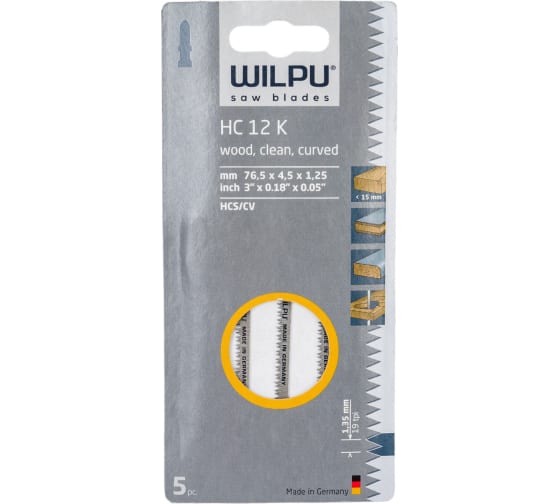 Купить Полотно для лобзика WILPU (HC 12 K; по дереву, фанере; 5шт; 0211300005) вы можете в компании Стройшоп, оформив заказ в интернет магазине, или