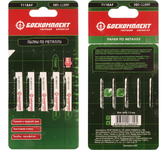 Купить Полотно для лобзика БОЕКОМПЛЕКТ (B05-118AF; по металлу 1-3мм, профиль 10-30мм; 5шт) вы можете в компании Стройшоп, оформив заказ в интернет магазине, или