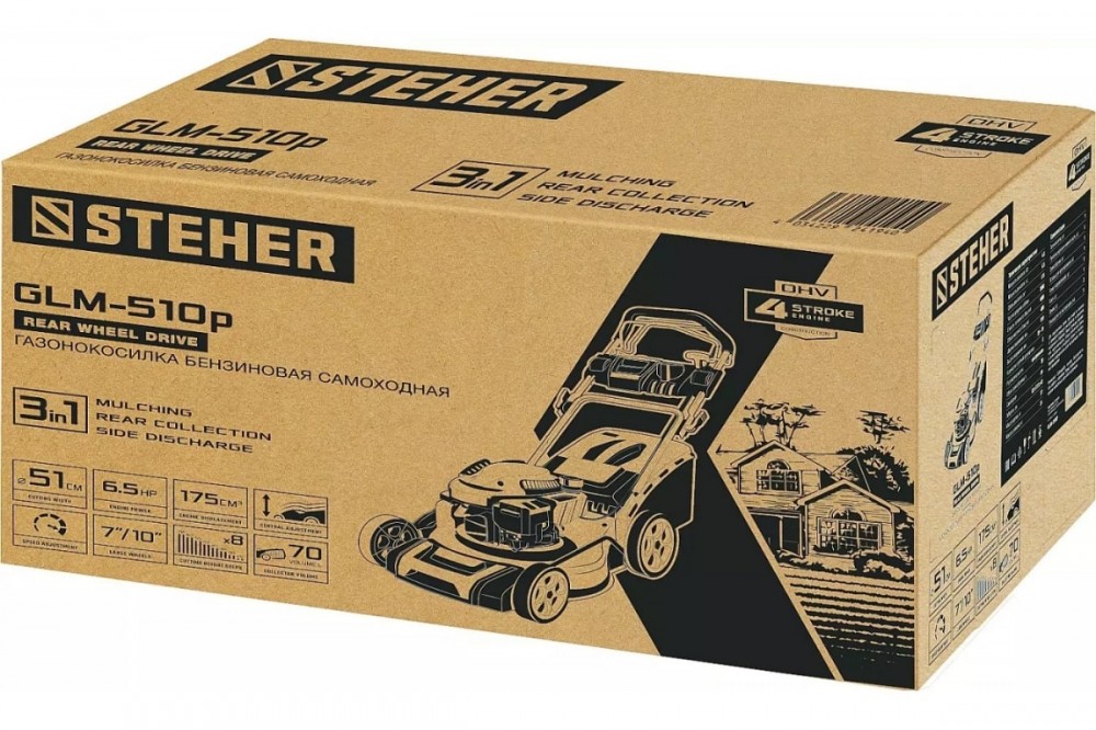 Купить Газонокосилка бенз. самоходная STEHER (GLM-510p; 6,5л.с.; ш.ск.51см) вы можете в компании Стройшоп, оформив заказ в интернет магазине, или
